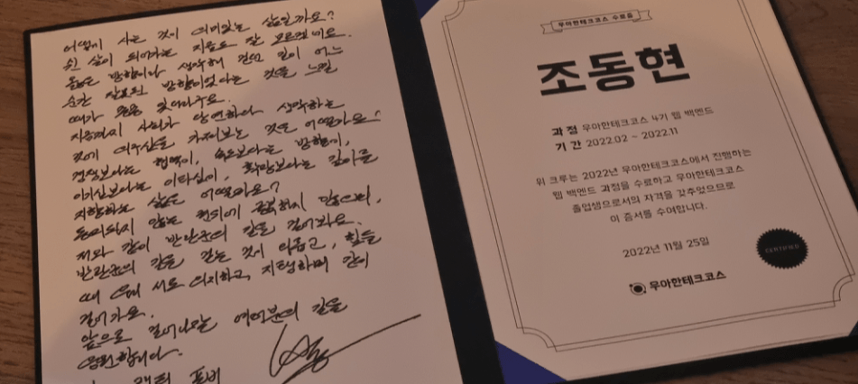 올해 2월부터 11월까지 진행된 우아한테크코스 4기 백엔드 교육 과정을 성공적으로 수료했다. 올 한해의 대부분을 차지한 빅 이벤트였으므로 이 이야기부터 먼저 해볼까한다.